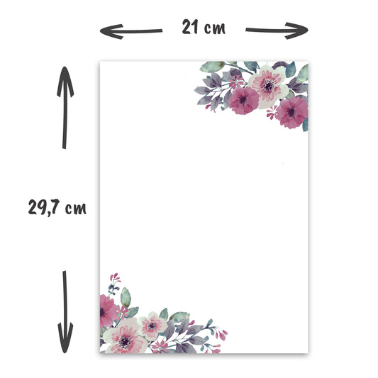 Briefpapier (60 Blatt, DINA4) Designpapier Aquarell-Vintage-Blumen Briefbögen (Blumen)