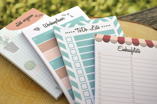 4 Blöcke Wochenplaner, Einkaufsliste, ToDo-Liste, Notizblock (je 50 Seiten, DIN A6)