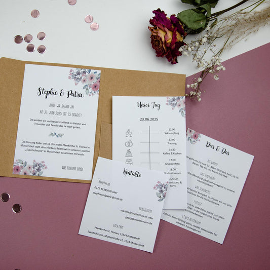 Personalisierbare Vorlage Pocketfolds B6 Flowers