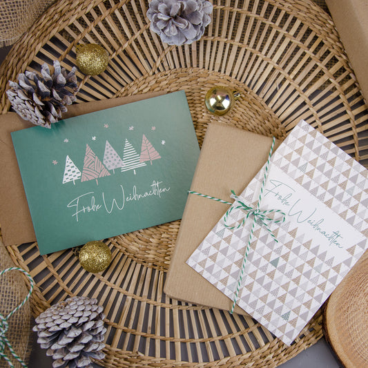 Weihnachtskarten & Umschläge aus Kraftpapier (20er Set, Tannenbäume)