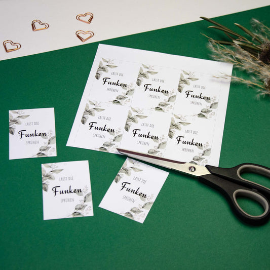 Wunderkerzen-Etiketten „Lasst die Funken sprühen“ | Greenery | Vorlage