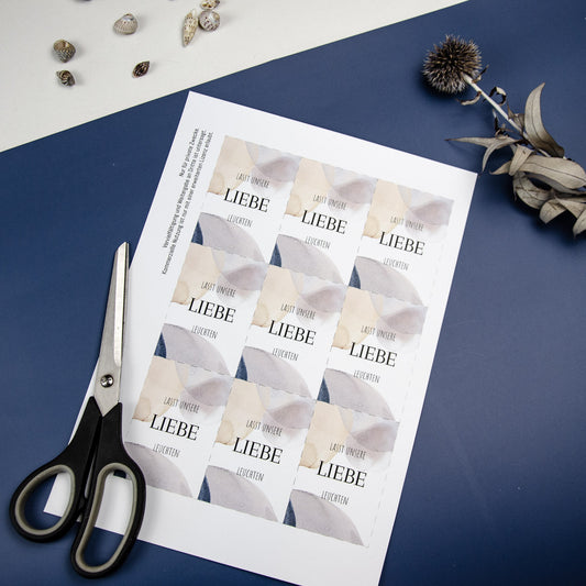 Wunderkerzen-Etiketten „Lasst unsere Liebe leuchten“ | Warercolor | Vorlage