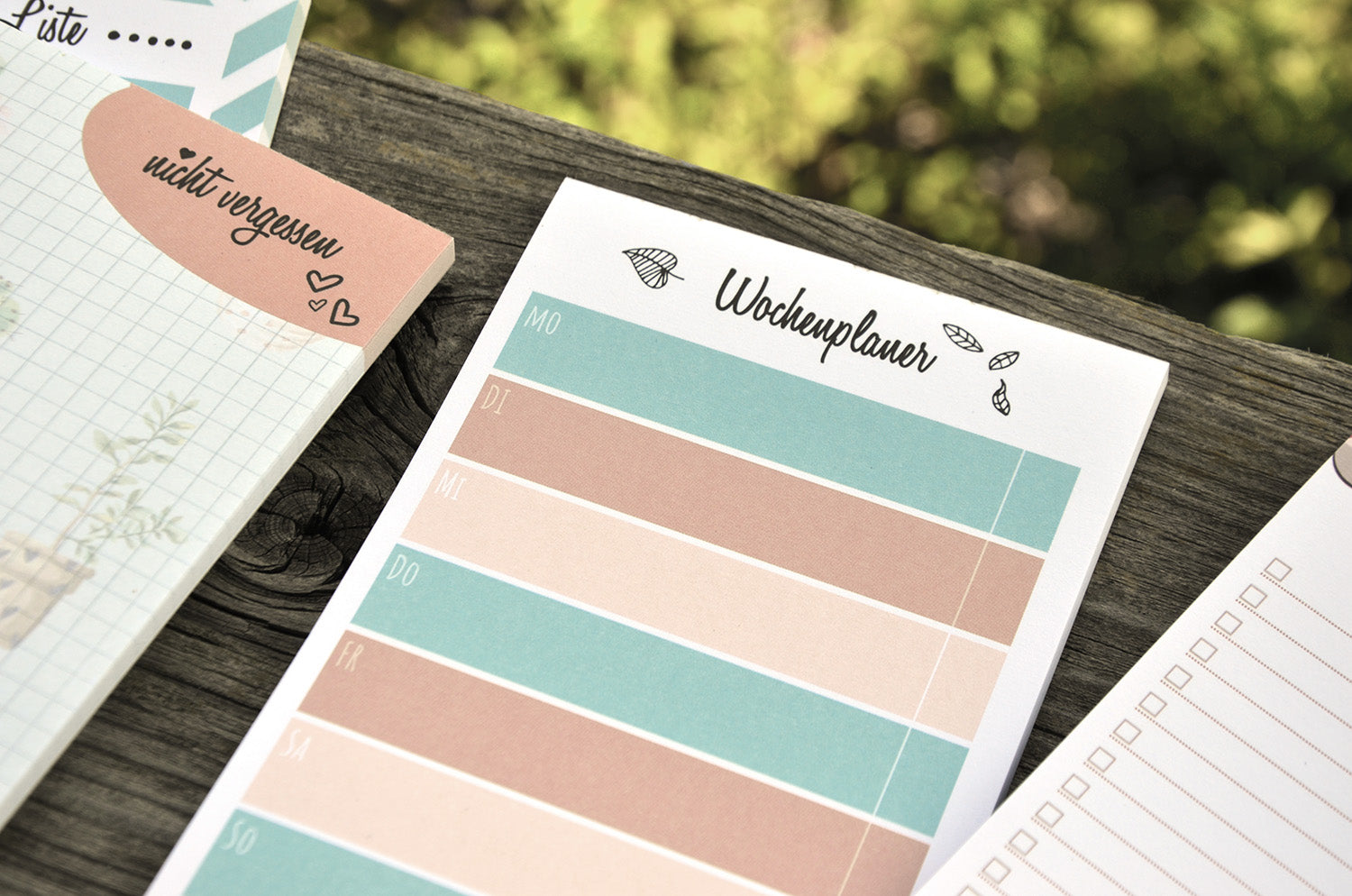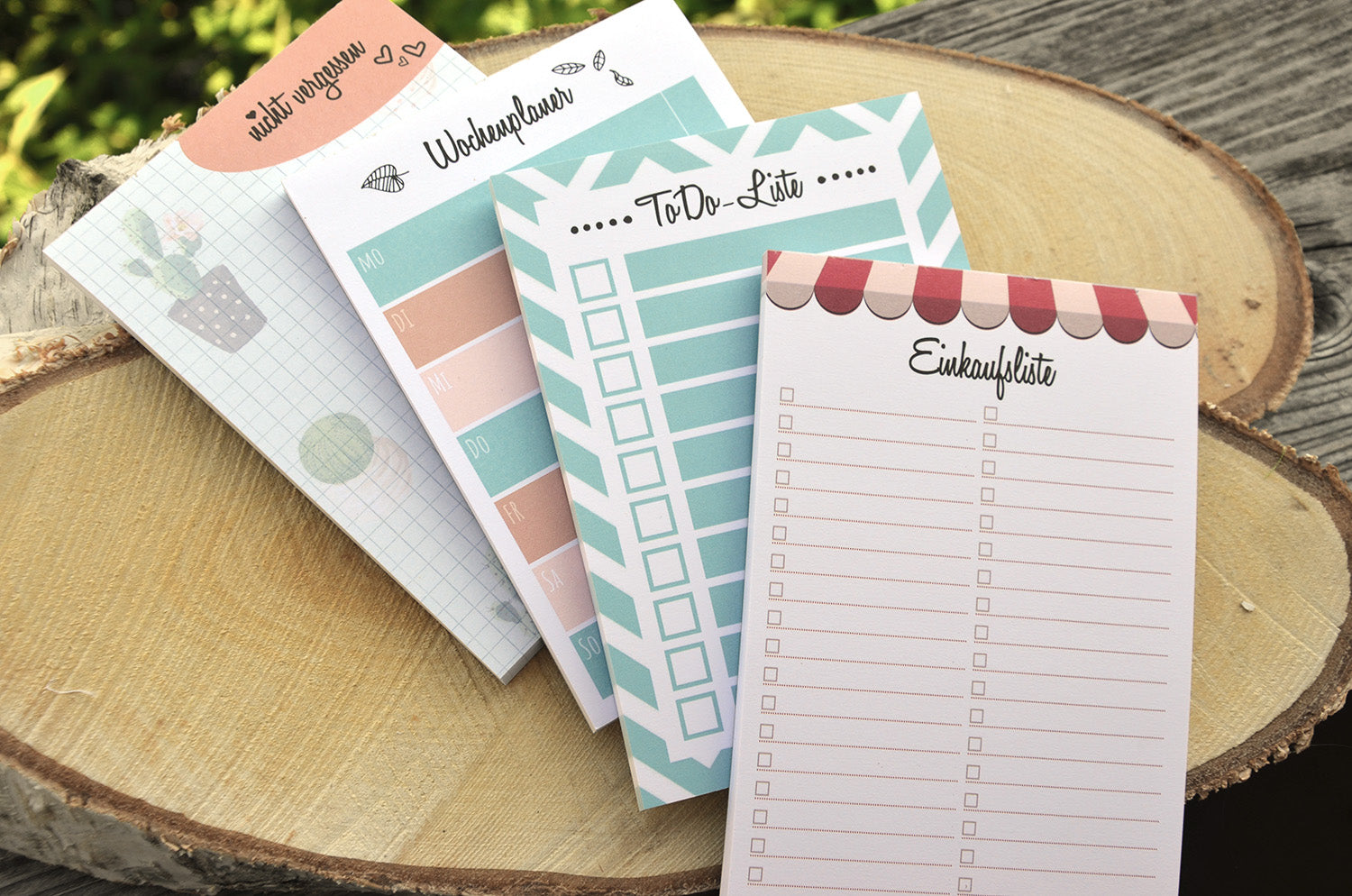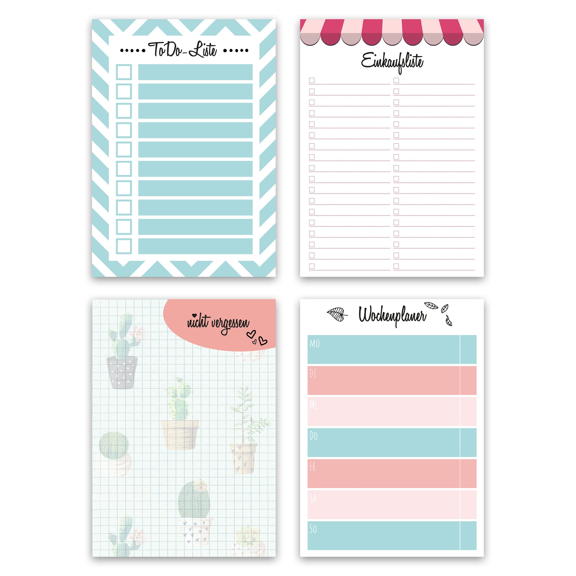 4 Blöcke Wochenplaner, Einkaufsliste, ToDo-Liste, Notizblock (je 50 Seiten, DIN A6)