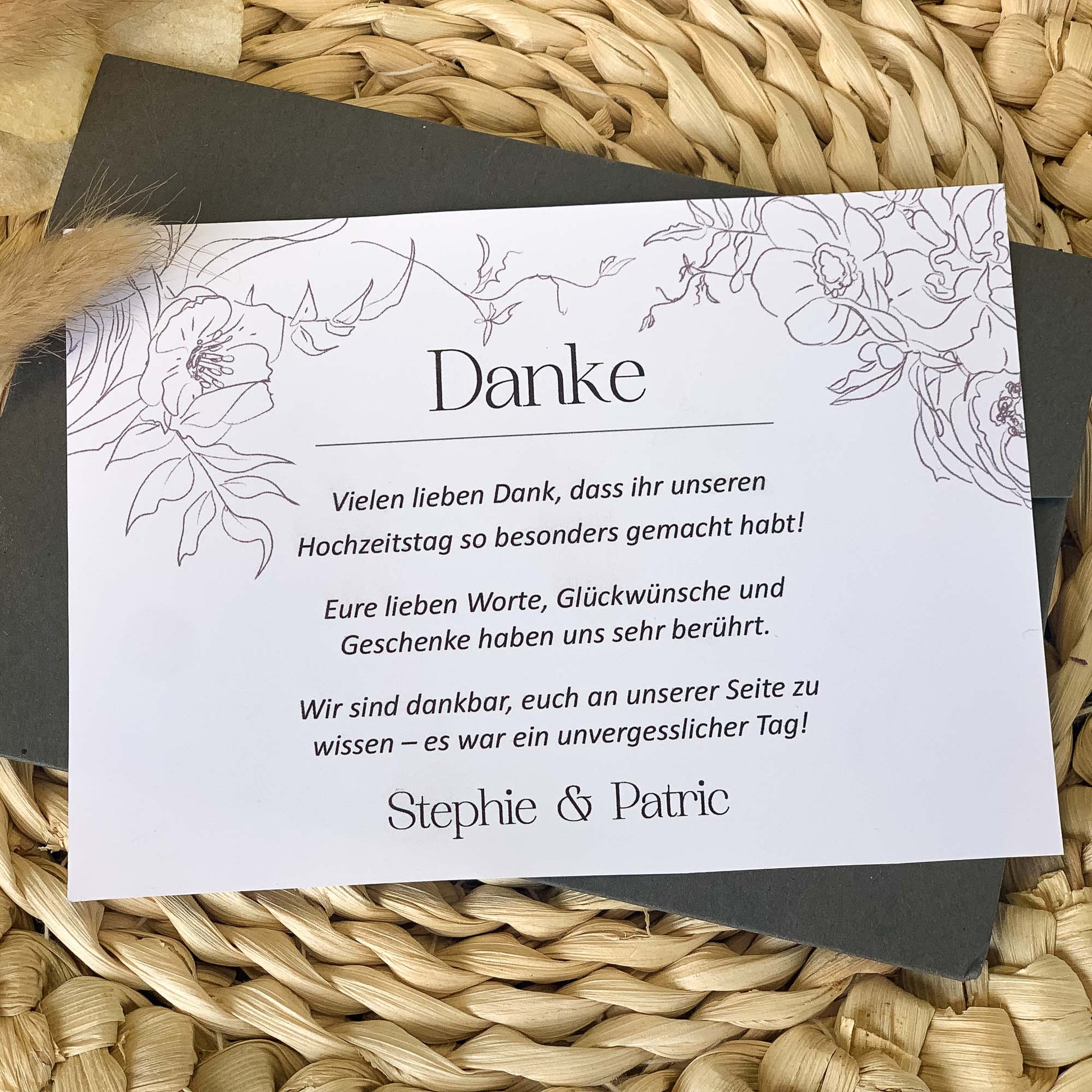 Ob elegant gedruckt oder digital verschickt – mit dieser Vorlage bedankt ihr euch auf liebevolle Weise bei euren Gästen. Ein persönlicher Abschluss eurer Hochzeit, der in Erinnerung bleibt.