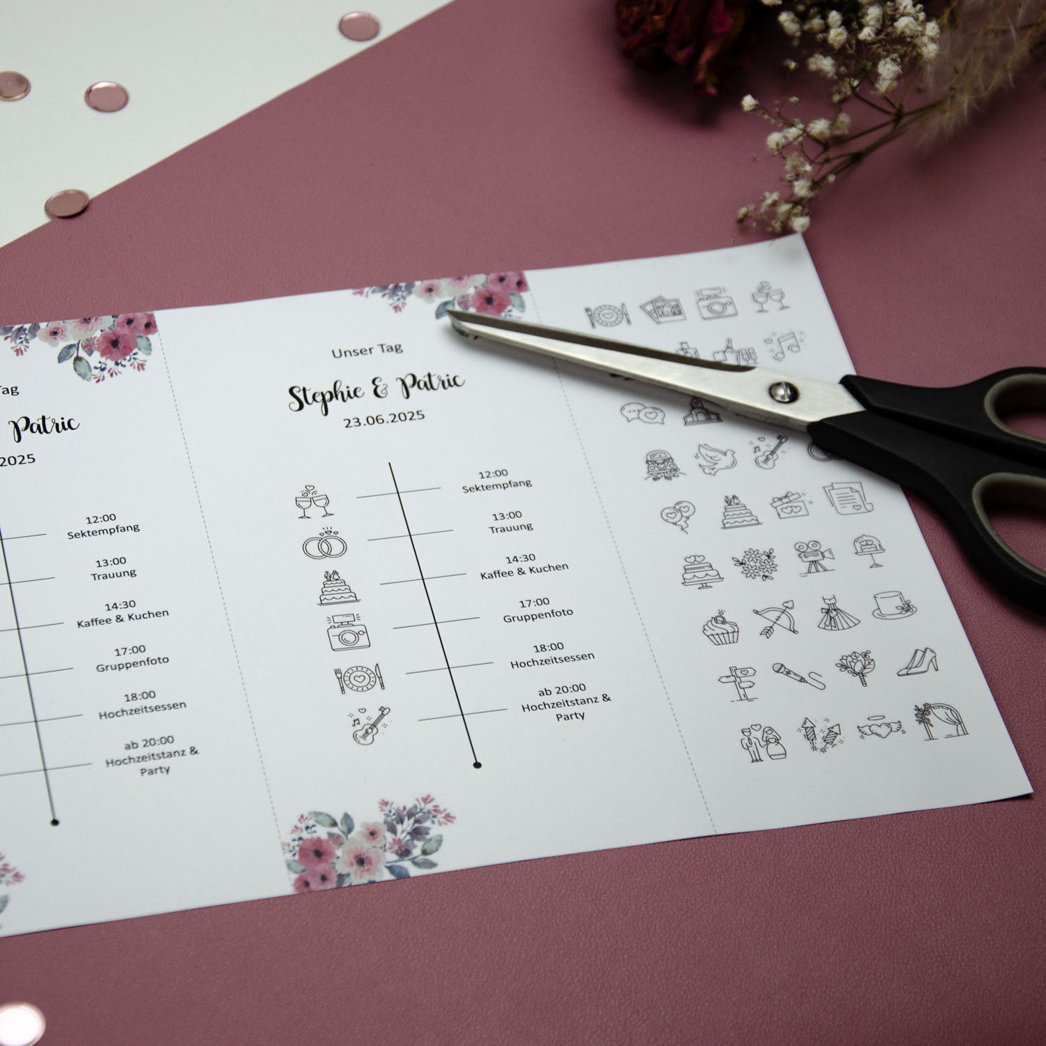 Verleiht eurem großen Tag einen einheitlichen Look! Mit unserem liebevoll gestalteten Hochzeits-Bundle im Flowers-Design könnt ihr eure Hochzeit bis ins Detail stilvoll und persönlich gestalten. Diese hochwertigen personalisierbaren Druckvorlagen bieten euch alles, was ihr braucht – der zauberhafte Start in eure gemeinsame Zukunft!