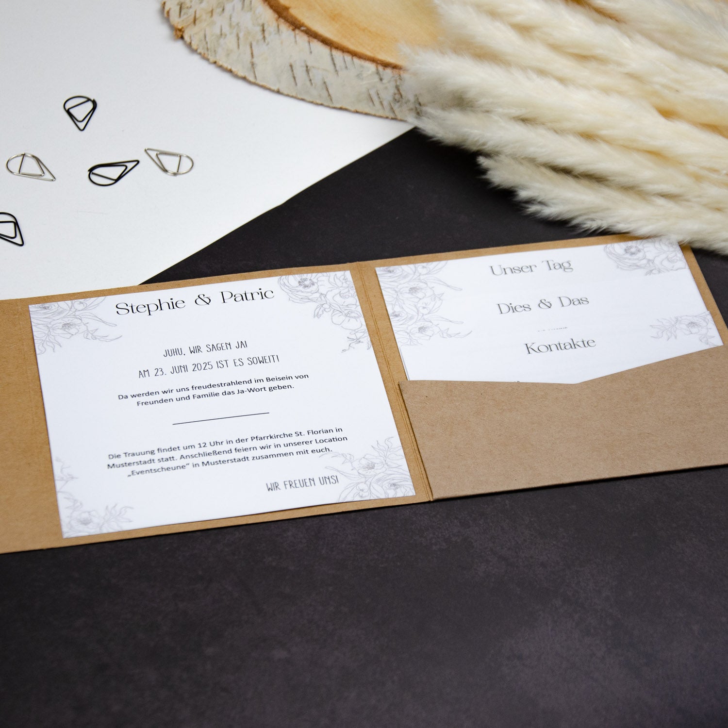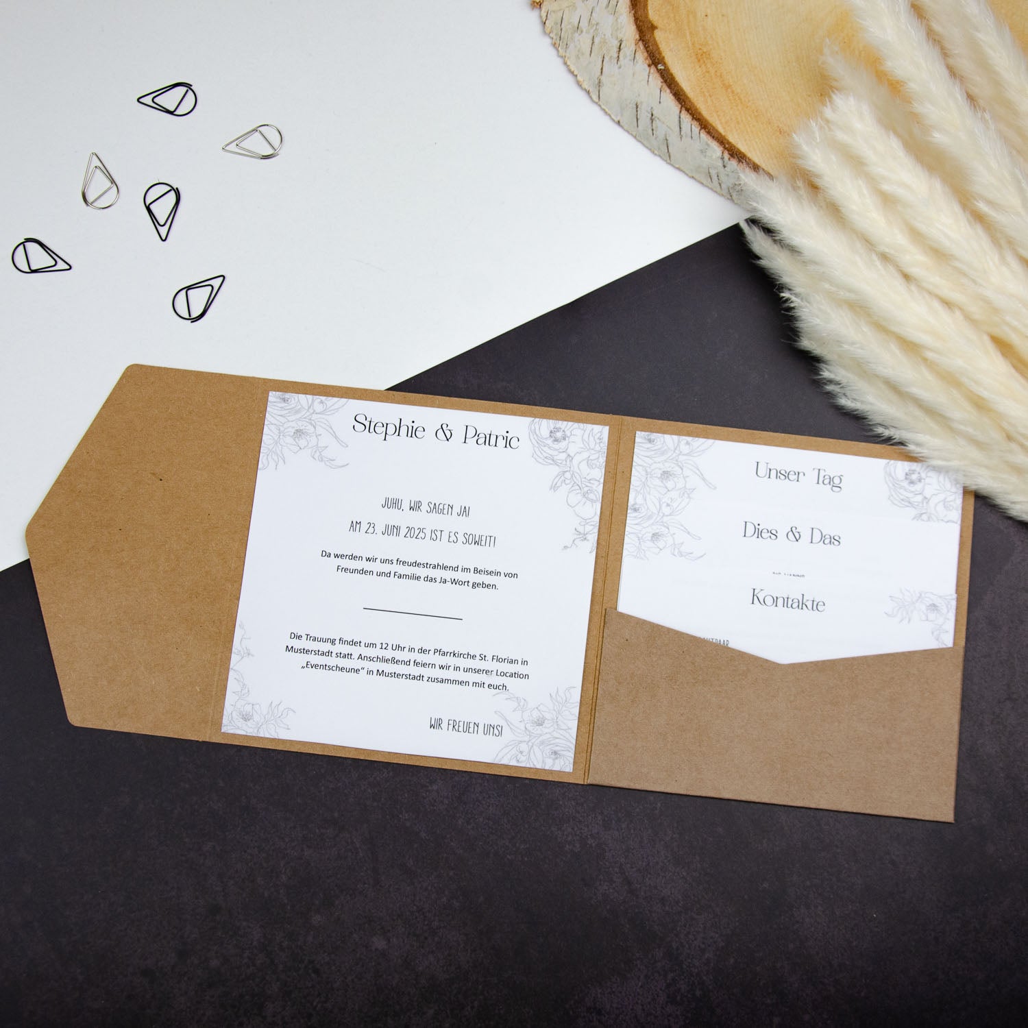 Kaufe die Vorlagen für deine Pockeltfolds als digitalen Download. Die Elemente lassen sich in Word/Pages/OpenOffice ganz einfach hin- und herschieben und kinderleicht anpassen! Diese Datei ist exakt für unsere Pocketfolds B6 geeignet.