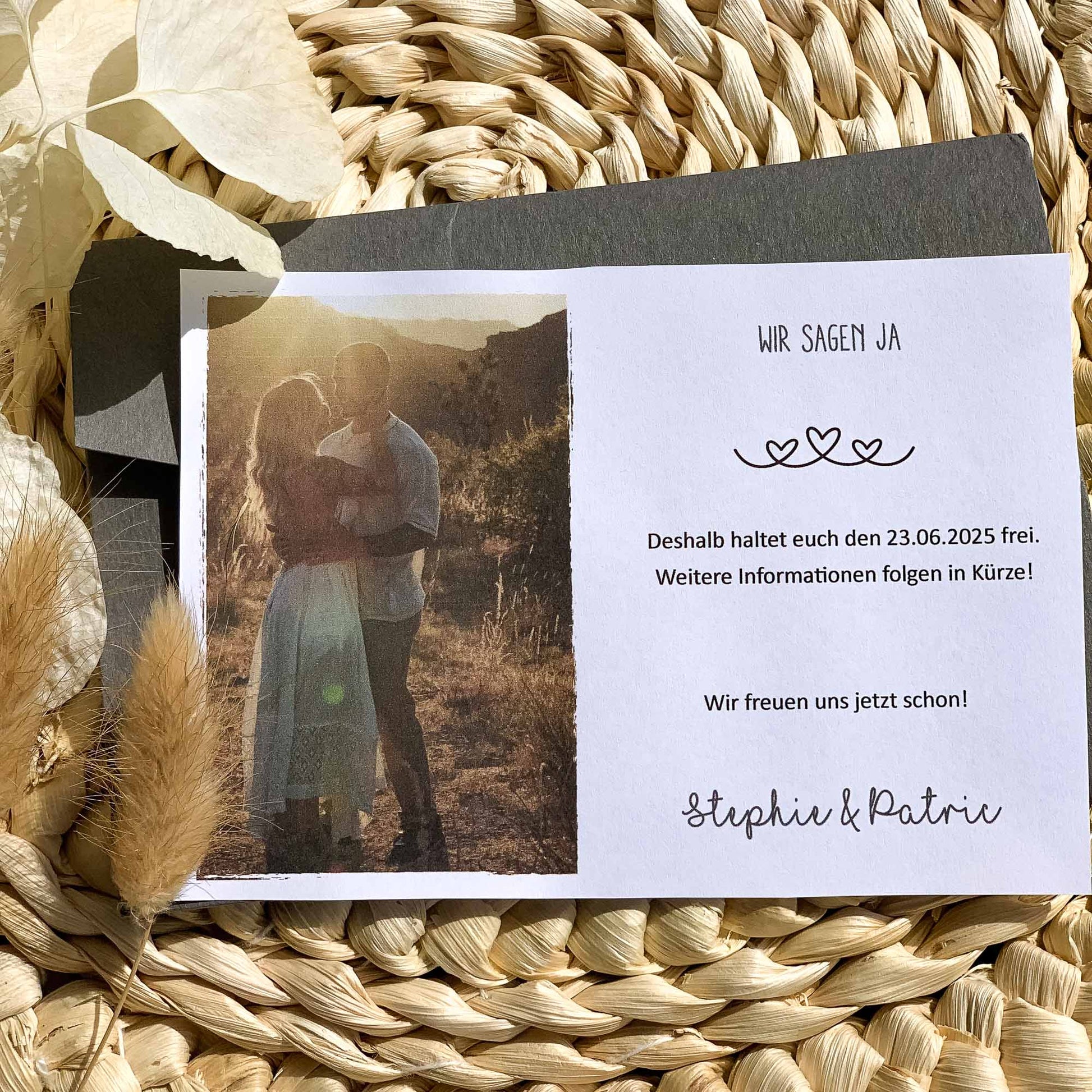 Macht den ersten Schritt in Richtung eurer Traumhochzeit und überrascht eure Gäste mit diesen charmanten Save the Date-Karten.