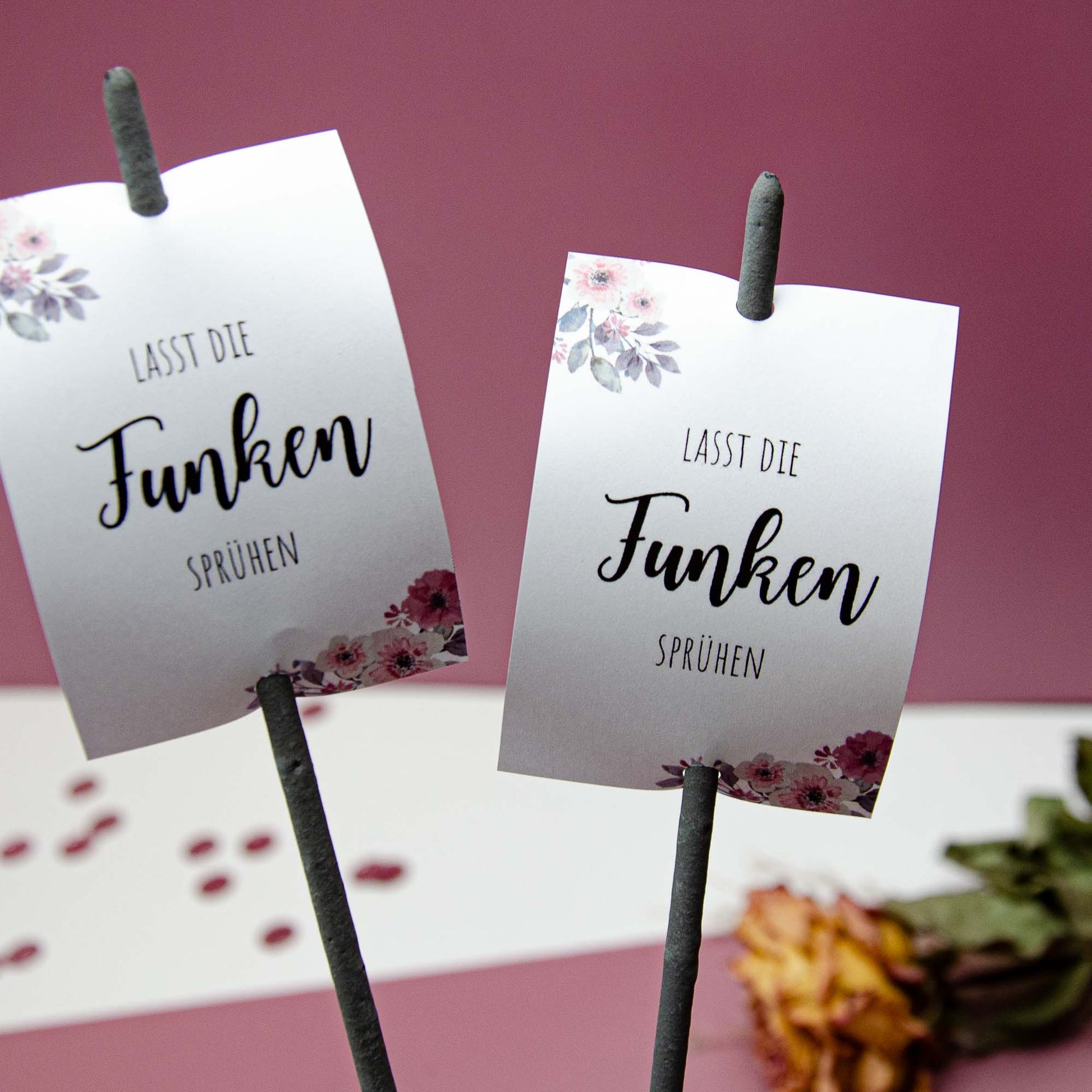 Bereit, eure Hochzeit zum Funkeln zu bringen? Mit unseren süßen Wunderkerzen-Anhängern "Lasst die Funken sprühen" verwandelt ihr simple Wunderkerzen in richtig coole Gastgeschenke und peppt eure Hochzeitsdeko ordentlich auf.