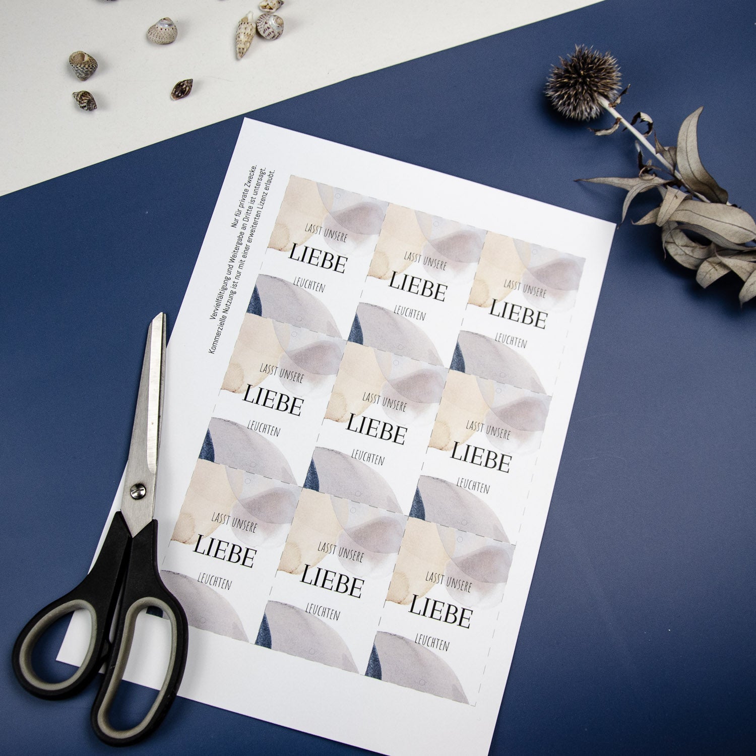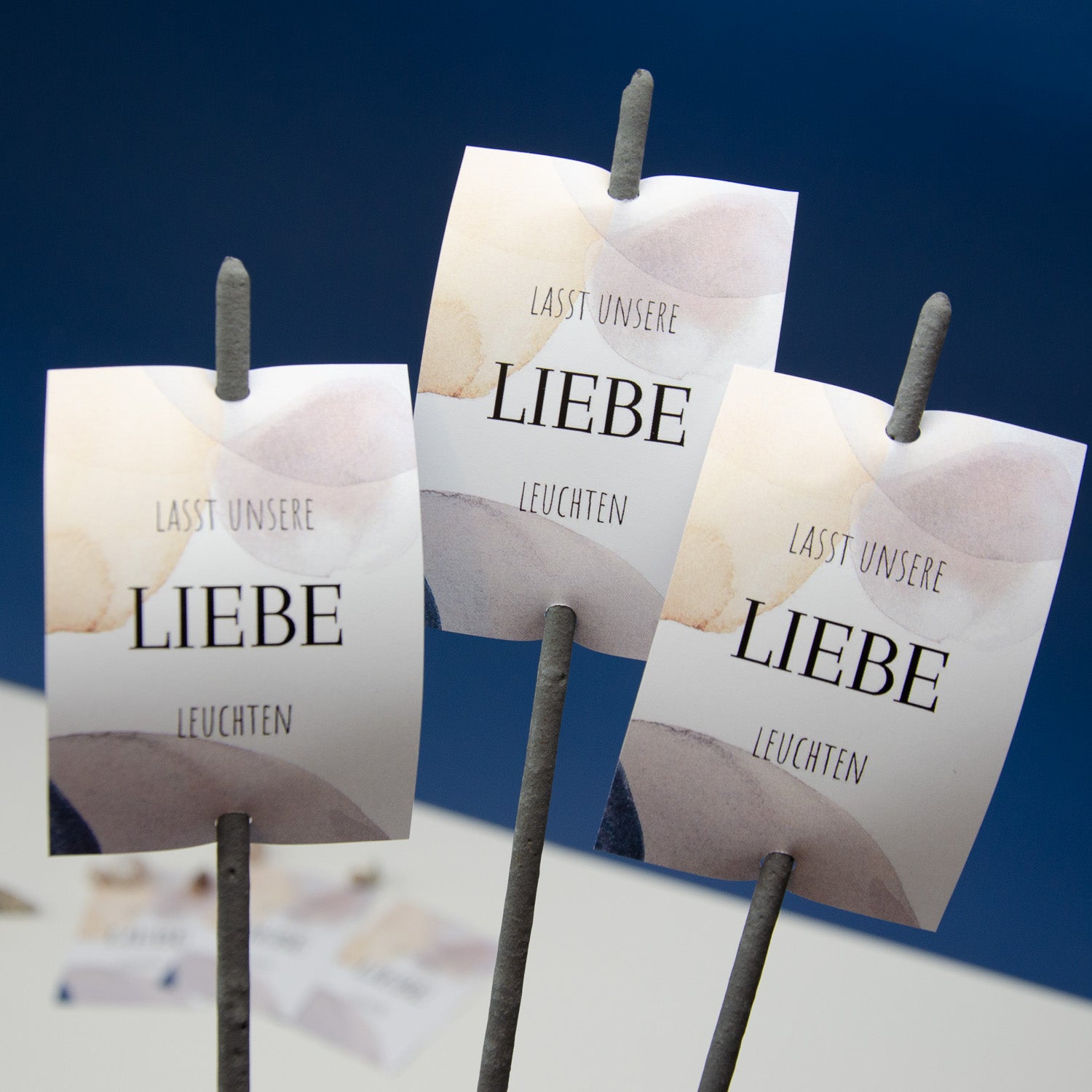 Die Wunderkerzen-Etiketten mit der Aufschrift "Lasst unsere Liebe leuchten" gibt es als praktische PDF-Datei zum Sofort-Download.